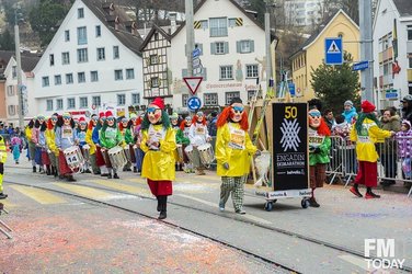 Freitag 13. Februar: Einschiessen durch die «Canonniers de Carneval» / «Ufwärmeta» auf dem Kornplatz mit verschiedenen Guggenauftritten